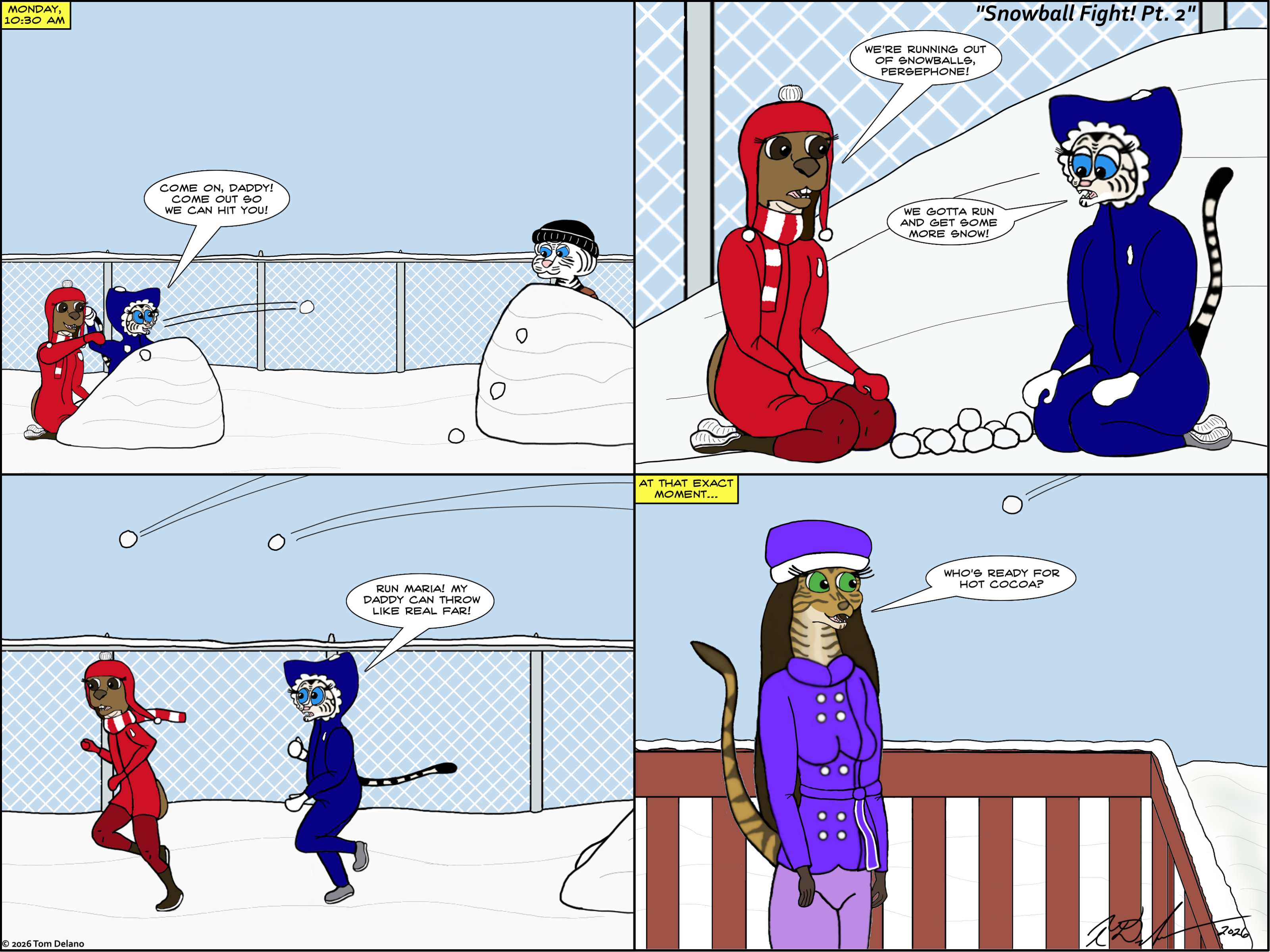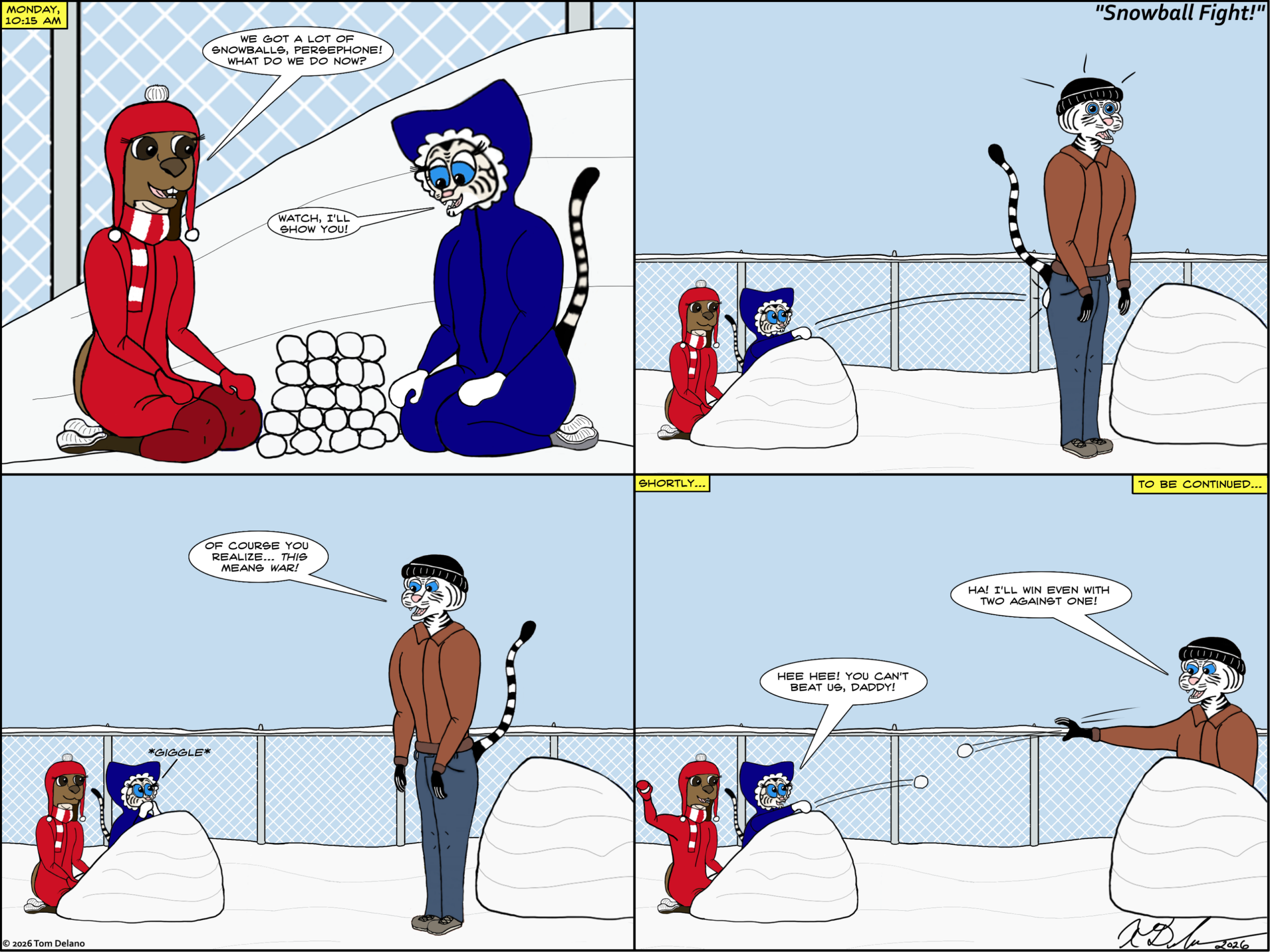 The snowball fight continues. Anybody else think J.J.’s peril-sensitive sunglasses just turned black? Please click here to vote for Bengal Tales! (function(l){var i;for(i=0;i